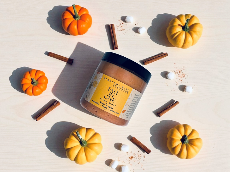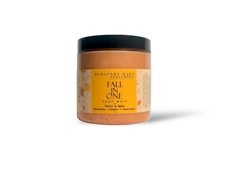 Wash the season over you. This Fall-in-One (Sweet & Spicy) whipped soap brings the sweetness of fall to your daily ritual with rich, creamy lather and notes of cinnamon, marshmallow, vanilla, and pumpkin. It cleanses gently, leaving your skin soft, moisturized, and kissed with cozy autumn scent.