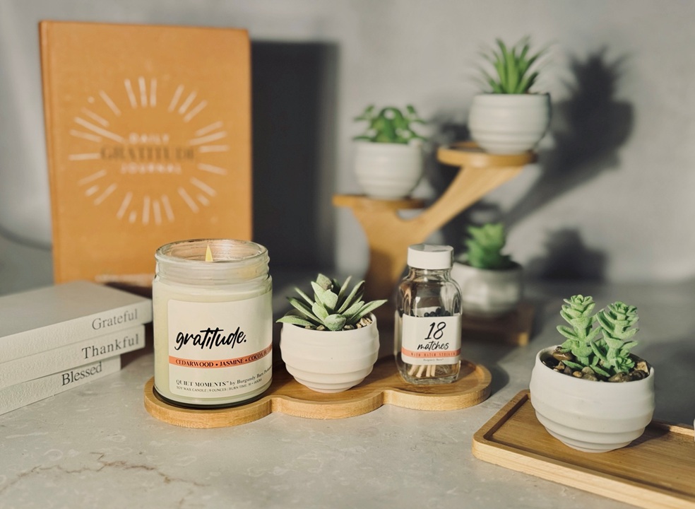 Quiet Moments: Gratitude Soy Candle + Match Bottle Set