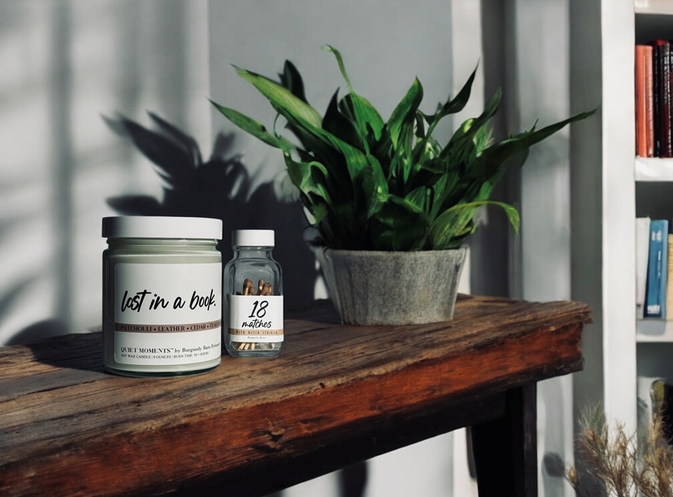 Quiet Moments: Lost in a Book Soy Candle + Match Bottle Gift Set